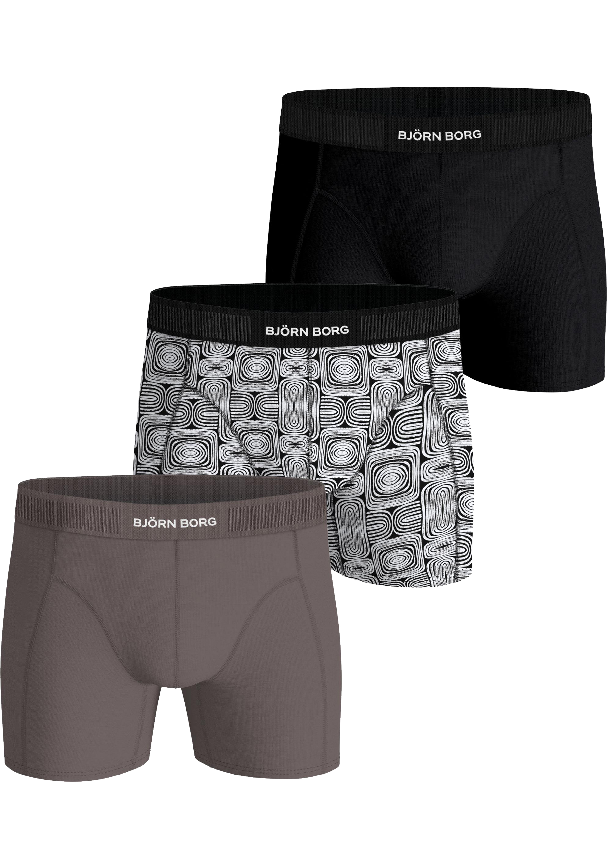 Bjorn Borg Cotton Stretch boxers, heren boxers normale lengte (3-pack), zwart, print, bruin