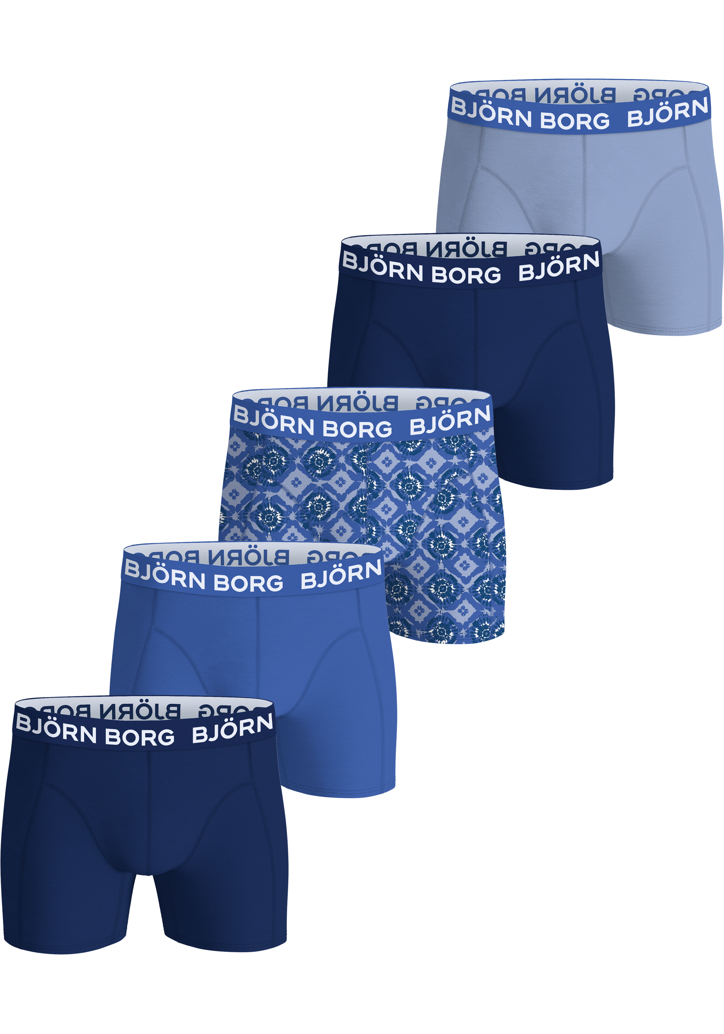 Bjorn Borg Cotton Stretch boxers, heren boxers normale lengte (5-pack), blauw, donkerblauw, print, blauw, donkerblauw