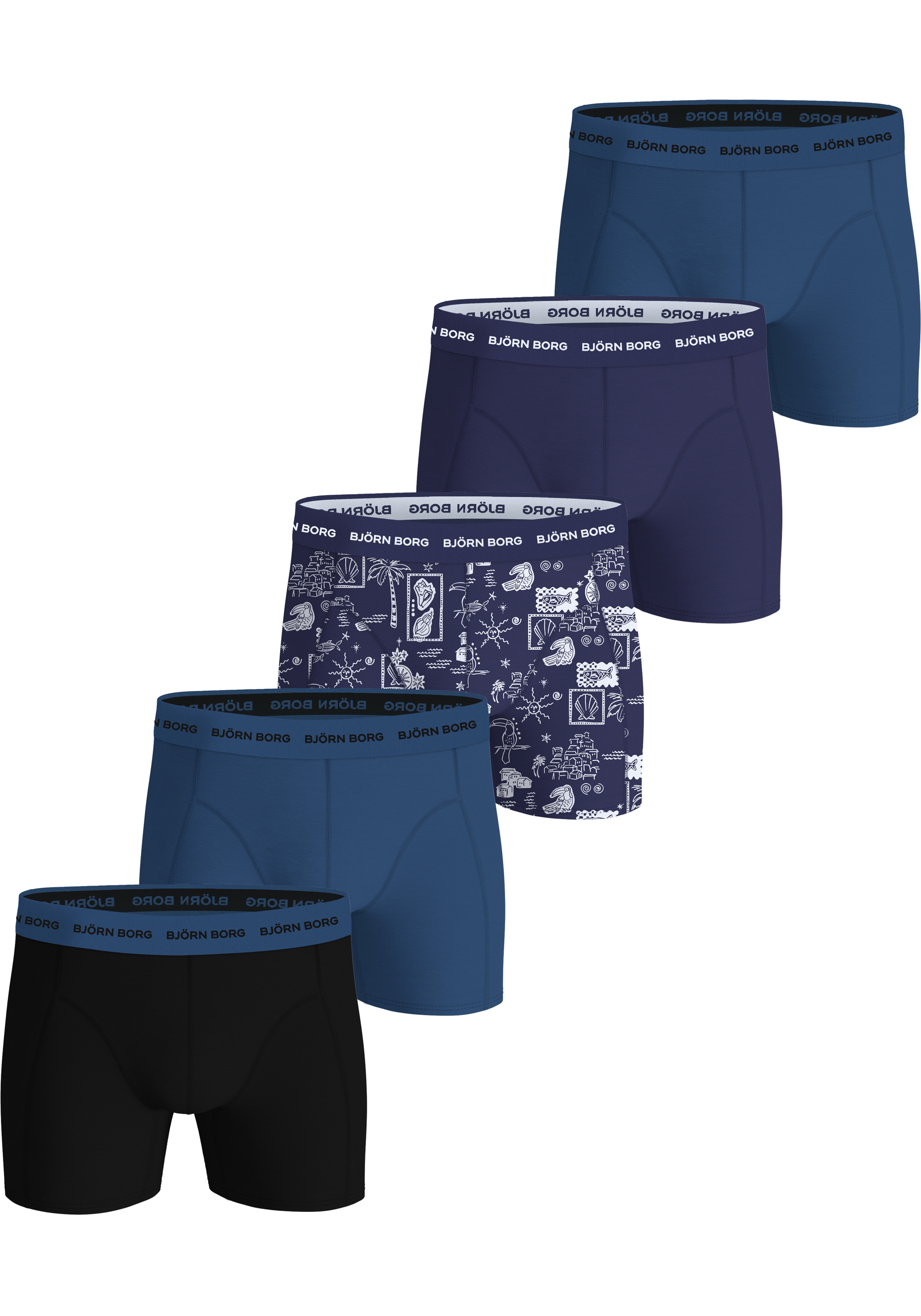 Bjorn Borg Cotton Stretch boxers, heren boxers normale lengte (5-pack), blauw, donkerblauw, print, blauw, zwart