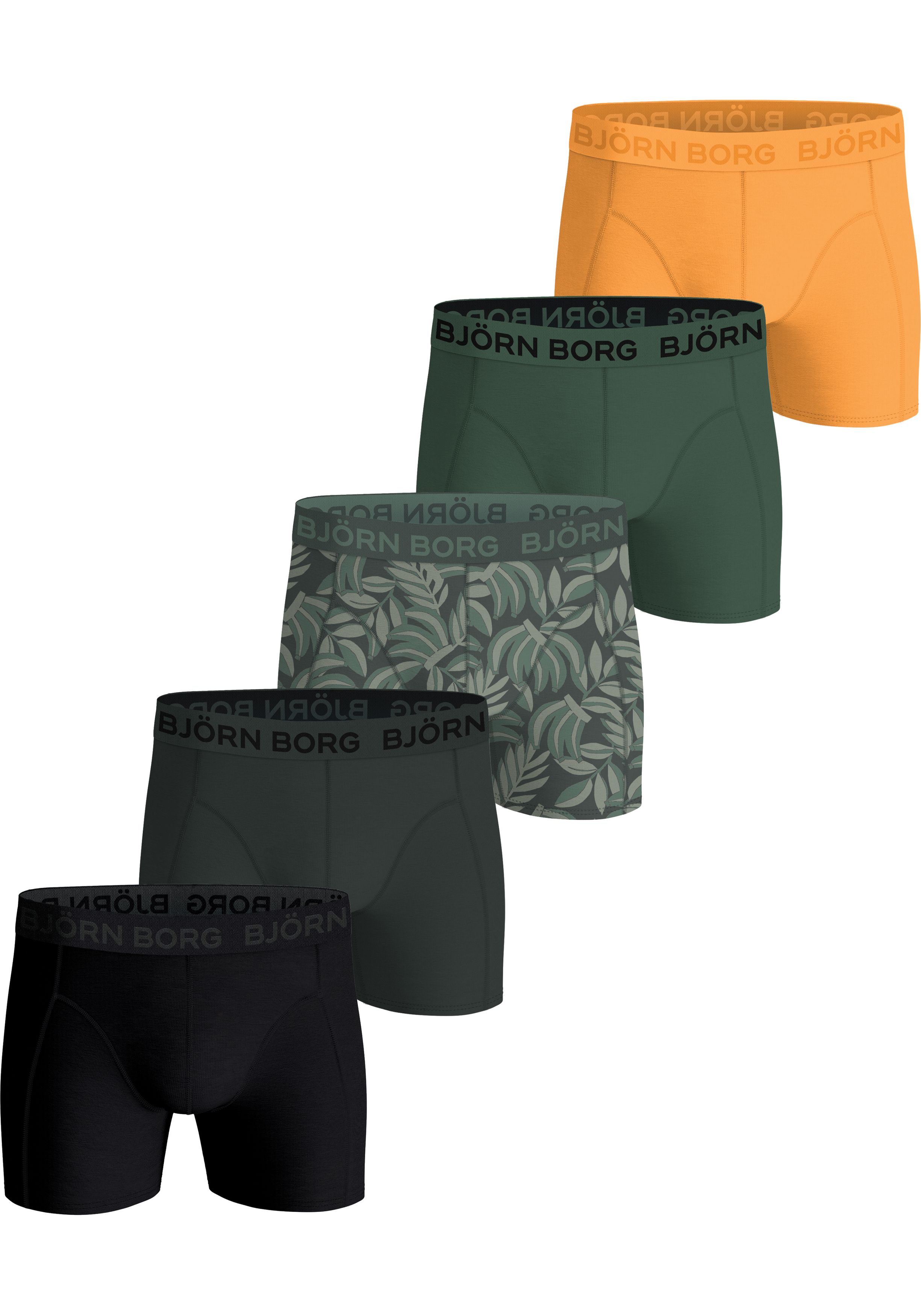Bjorn Borg Cotton Stretch boxers, heren boxers normale lengte (5-pack), oranje, groen, print, groen, zwart