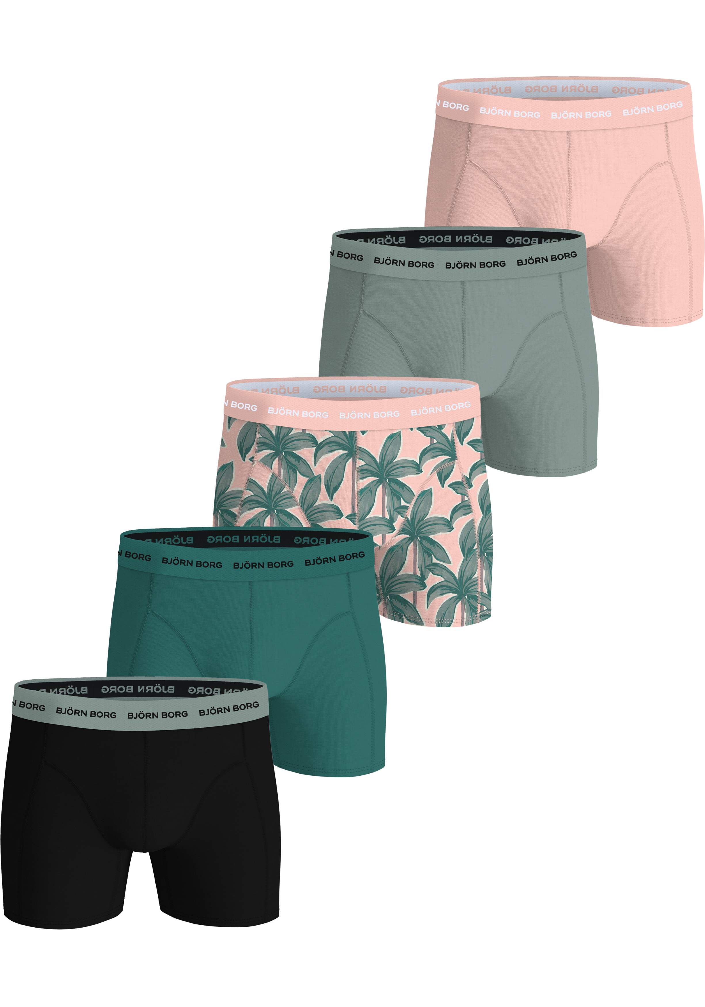Bjorn Borg Cotton Stretch boxers, heren boxers normale lengte (5-pack), roze, grijs, print, blauw, zwart