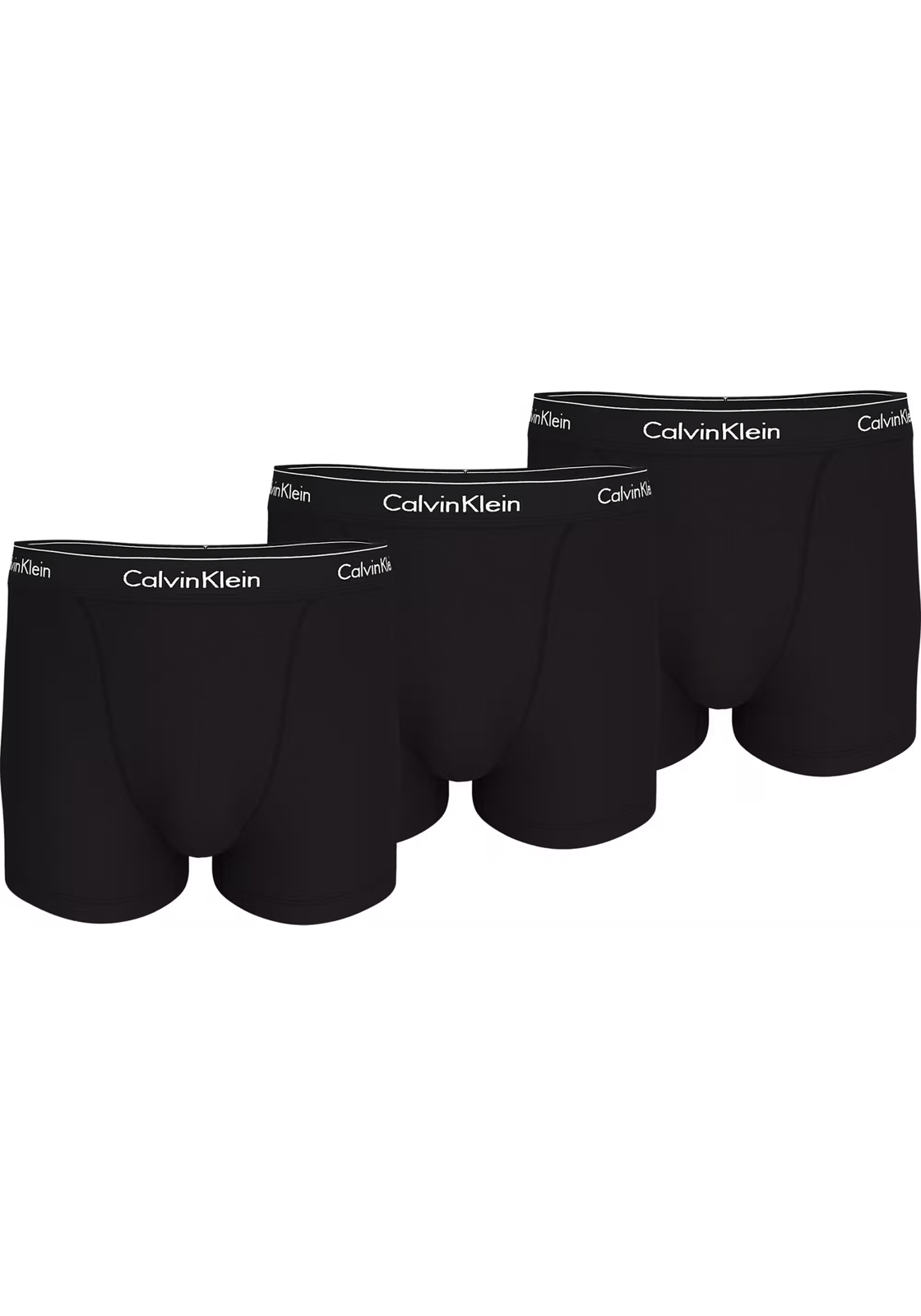 De Calvin Klein Trunk in een set van 3 stuks, zijn een fijne toevoeging aan je ondergoed voorraad. Heren boxers in een model met pijpjes in een normale lengte en een normale hoogte taille, afgewerkt met een brede logo tailleband. De tricot stof is een standaard combinatie van katoen en een fijne dosis stretch. Boxer met een normale taille, normale pijpen en een Calvin Klein signature elastische tailleband.