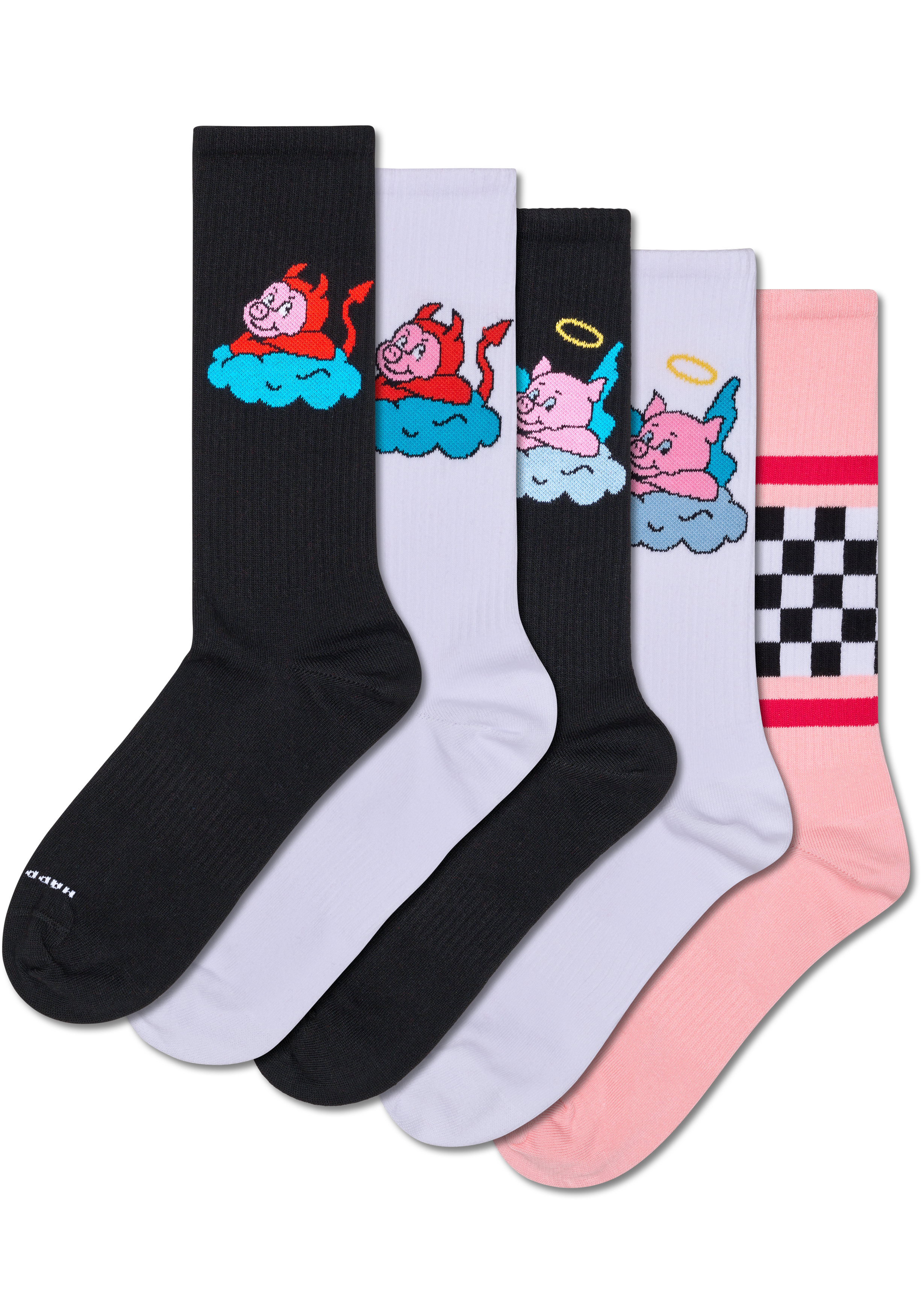 De Good & Bad Pig Sneaker Socks van Happy Socks zijn de leukste sokken voor jezelf of voor iemand anders. Een paar Happy Socks is altijd goed voor een glimlach, dat begint al bij het aantrekken, maar dat loopt ook de hele dag door. Het klassieke model van Happy Socks komt tot de kuit en is gemaakt in een normale dikte van een heerlijk zacht materiaal met stretch. Draag ze zelf of geef ze cadeau!