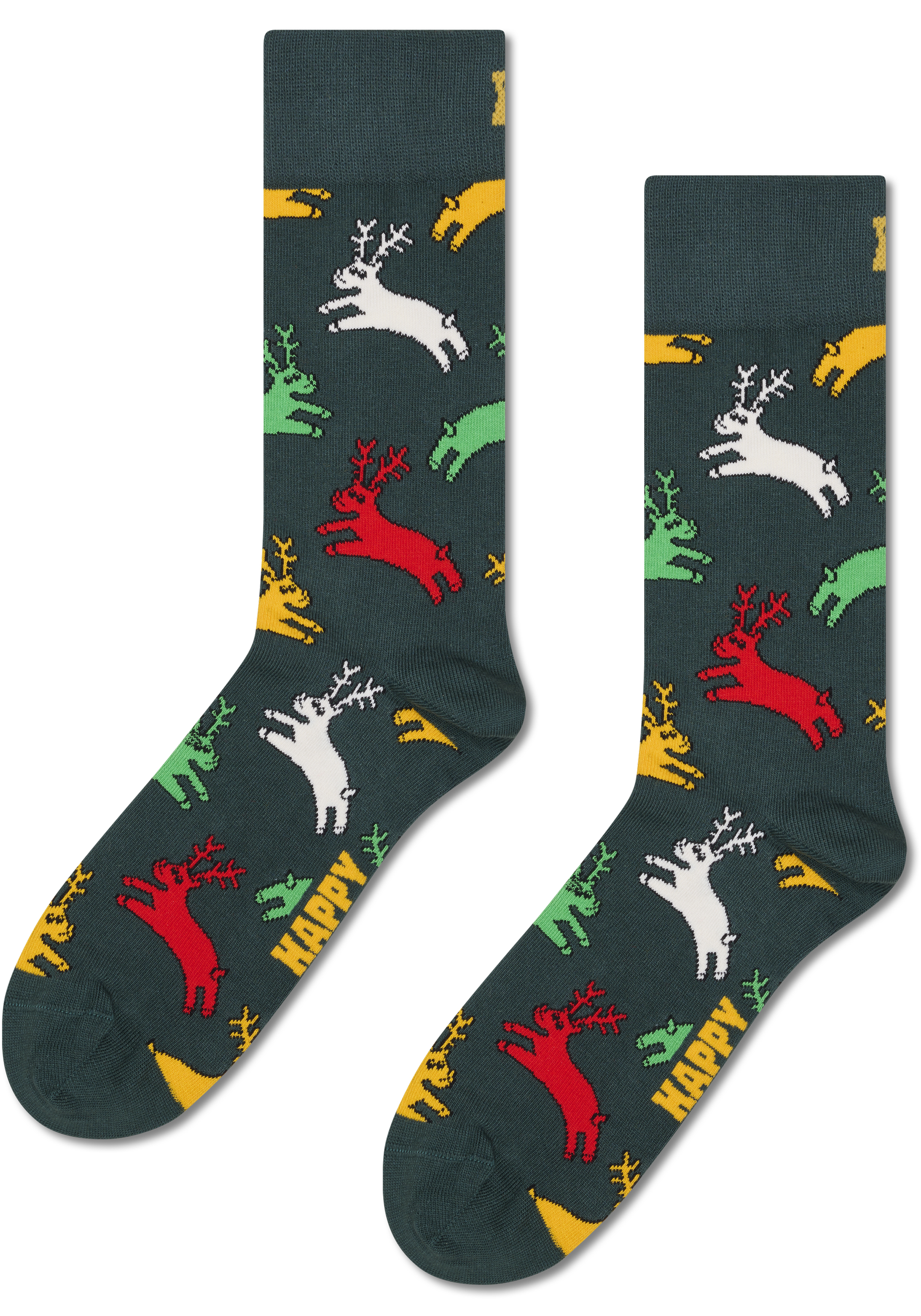 Happy Socks Reindeer Sock, unisex sokken, donkergroen