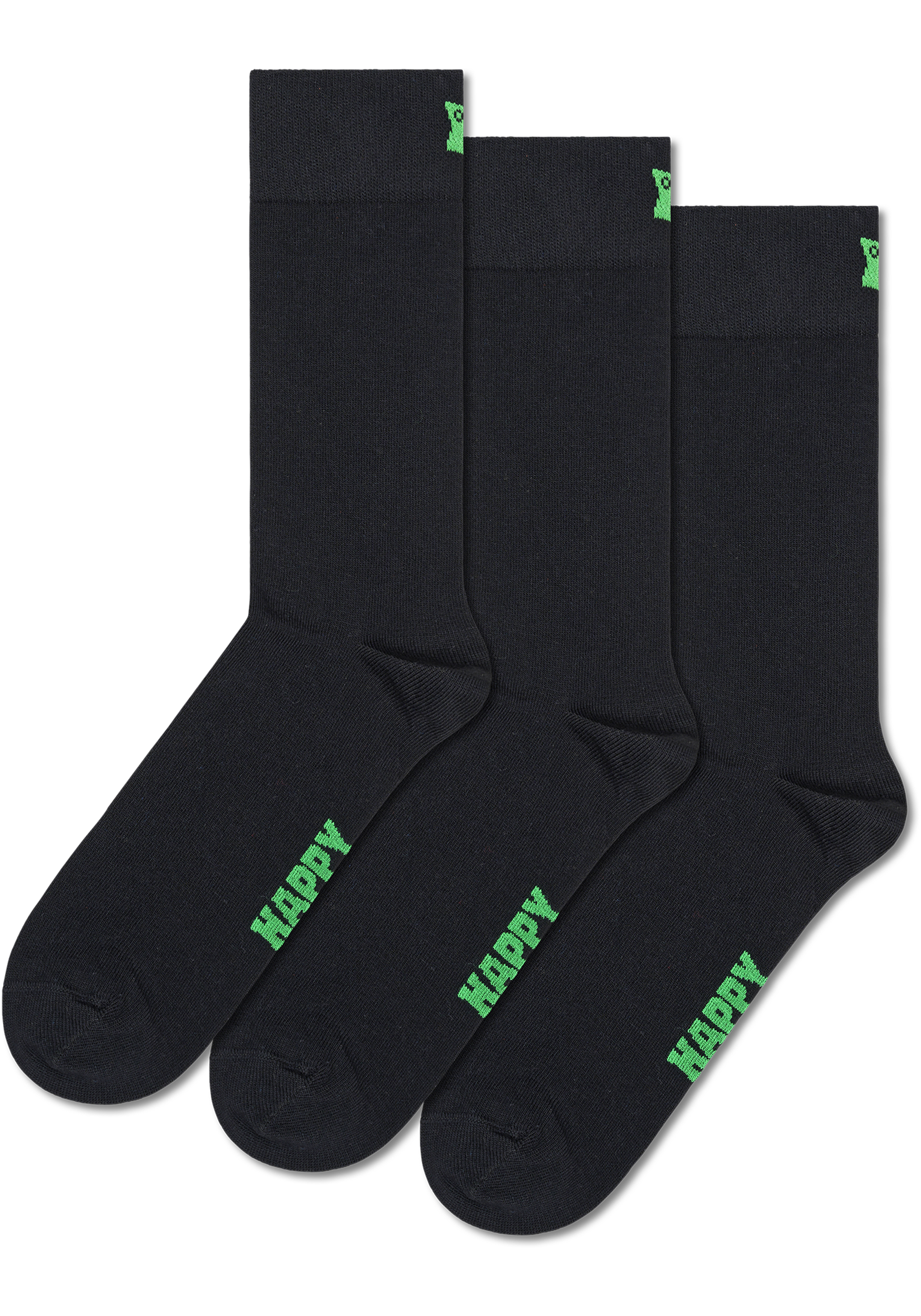 Happy Socks Solid Socks (3-pack), unisex sokken, zwart
