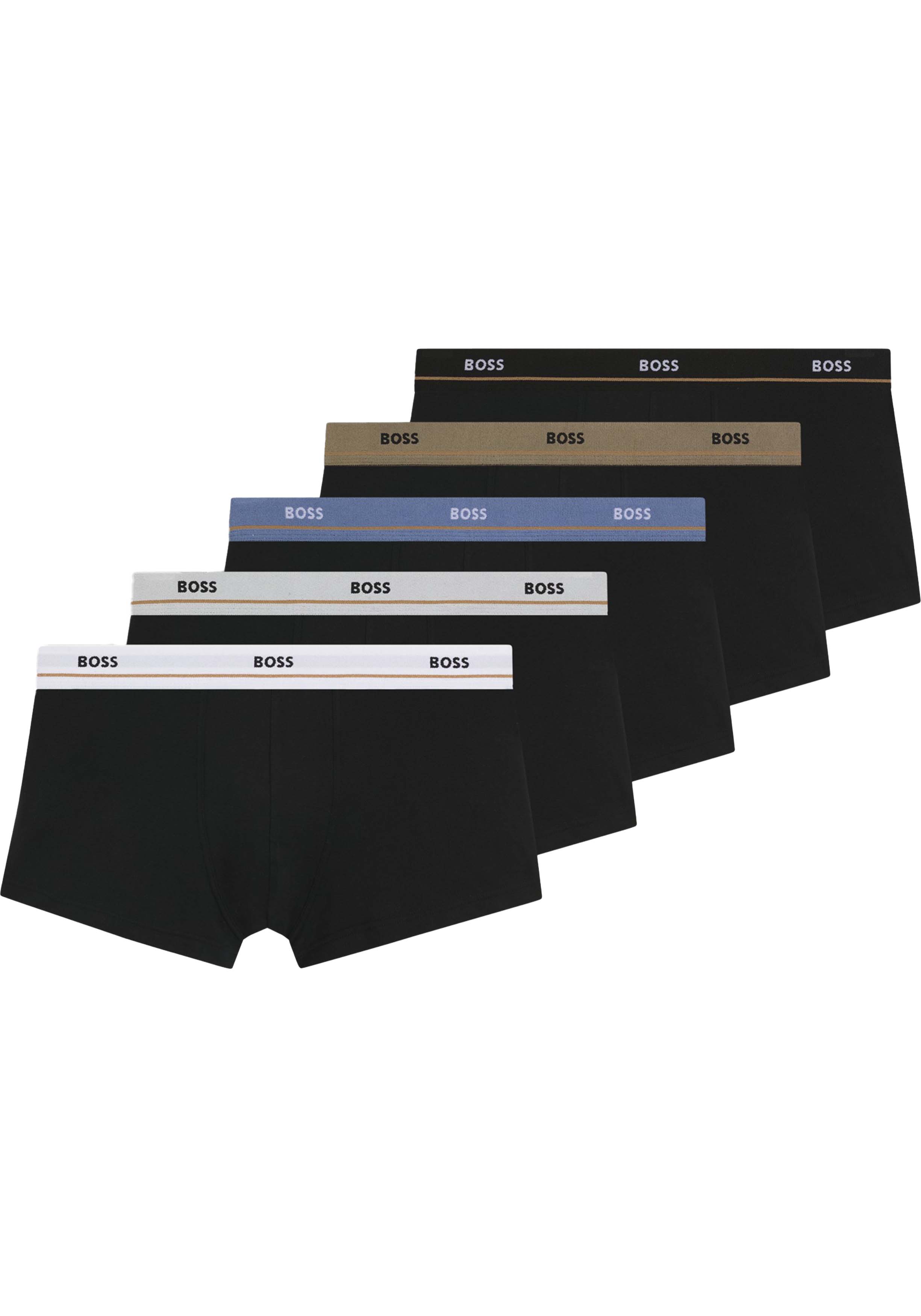HUGO BOSS Essential trunks (5-pack), heren boxers kort, zwart met gekleurde tailleband