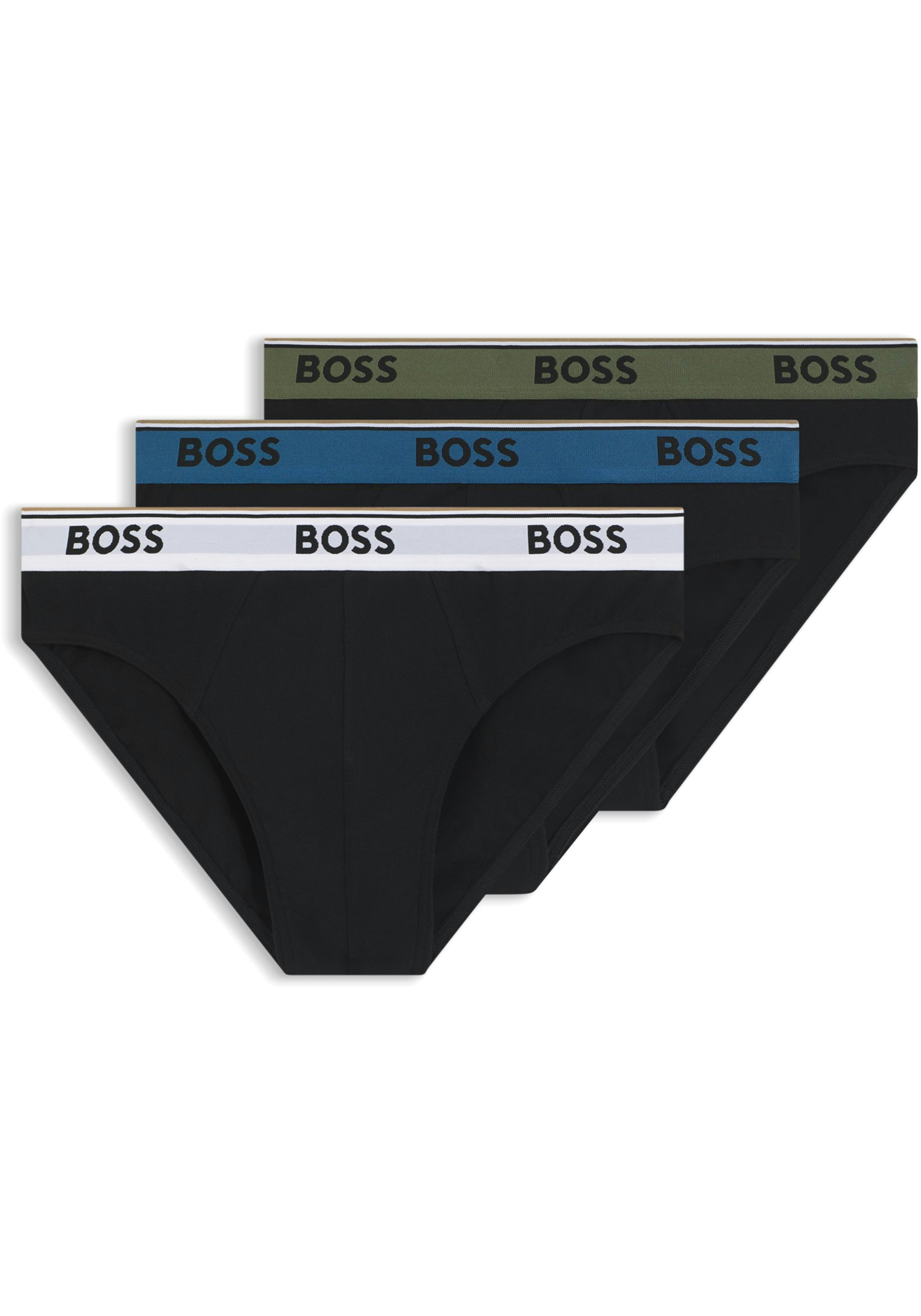 HUGO BOSS Power briefs (3-pack), heren slips, zwart met gekleurde tailleband
