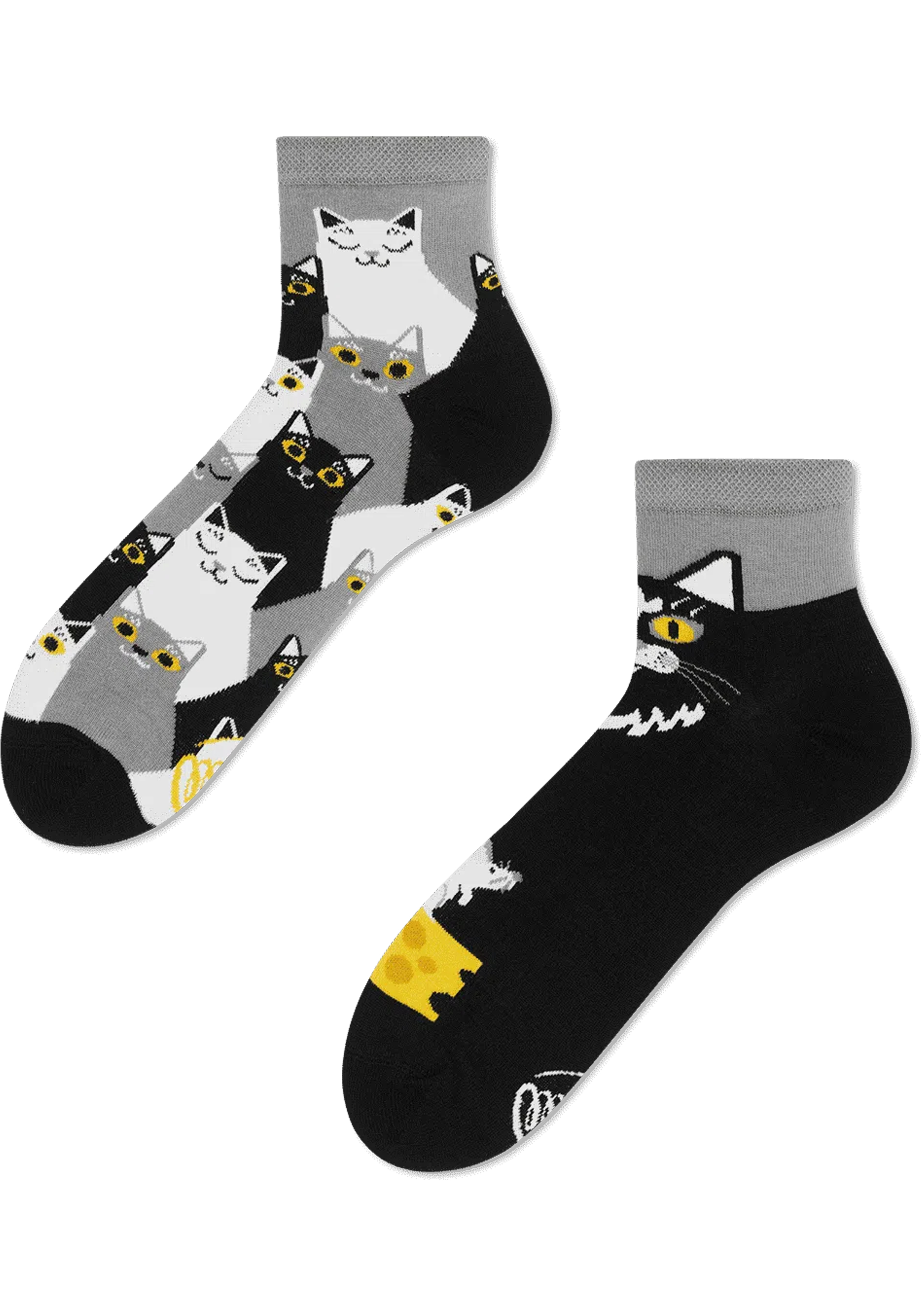 Many Mornings unisex hoge enkelsokken, Black Cat Quarter