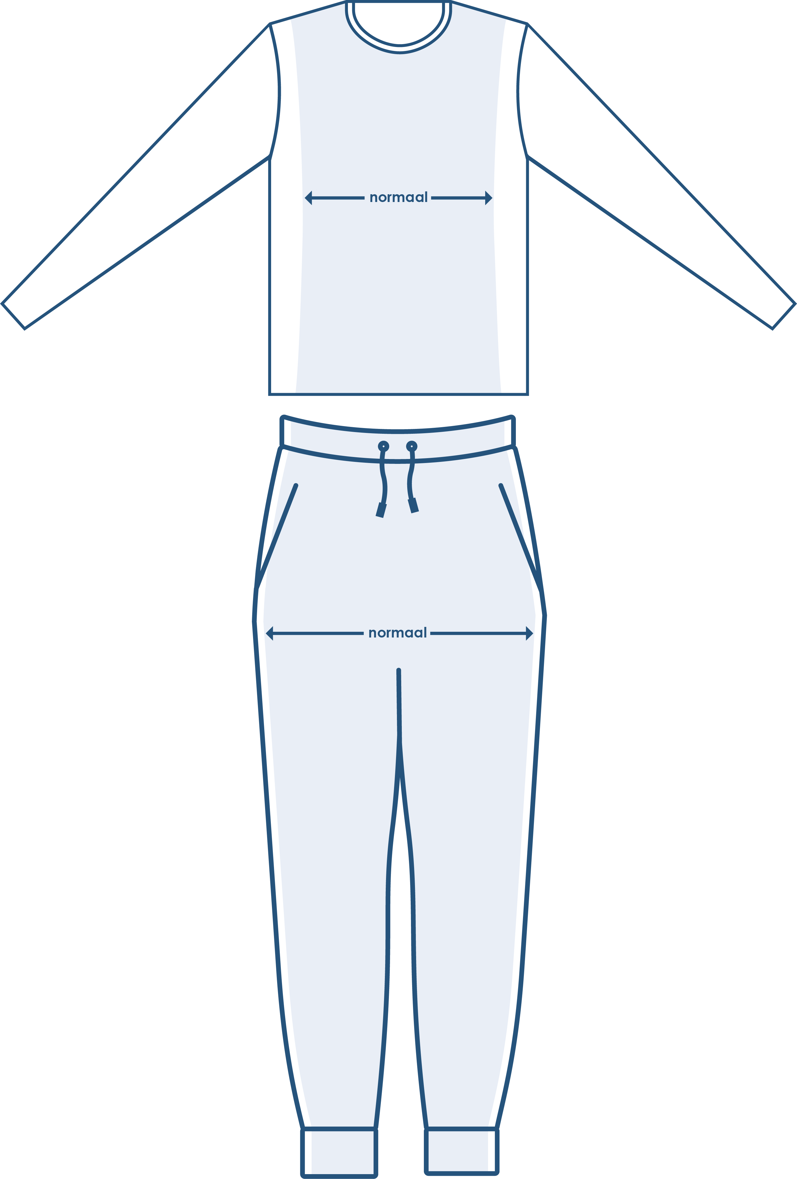 Een pyjama in een normale pasvorm is perfect geschikt voor iemand met een gemiddeld tot iets voller postuur. Deze pasvorm is in Nederland het meest verkocht en heeft dankzij het net iets slanker gesneden silhouet ten opzichte van een wijde pyjama, een moderne uitstraling zonder strak te zitten. Zoek je een wijder model, kies dan van onze "wijde" modellen.